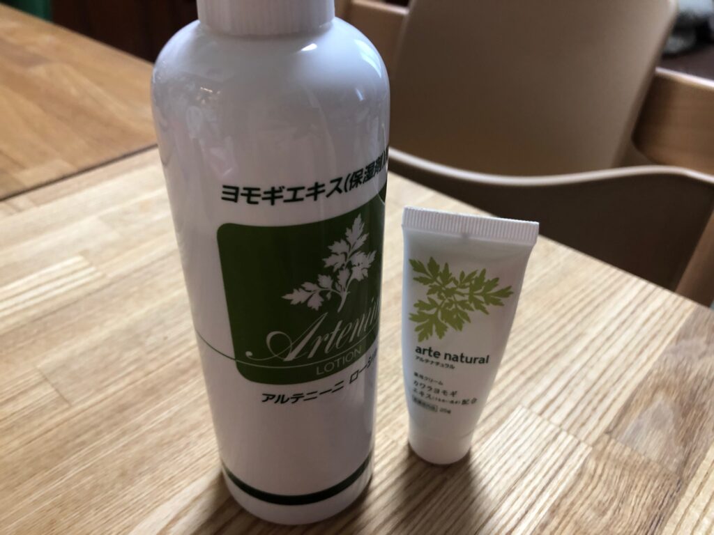 もちろんヒルドイドはよく効いてくれましたが、朝晩2回という処方だったので、(あまり塗りすぎも良くないのかなとビビっていた)朝晩以外の痒くなった時に清涼感のあるよもぎエキスを都度塗るようにしていました。
